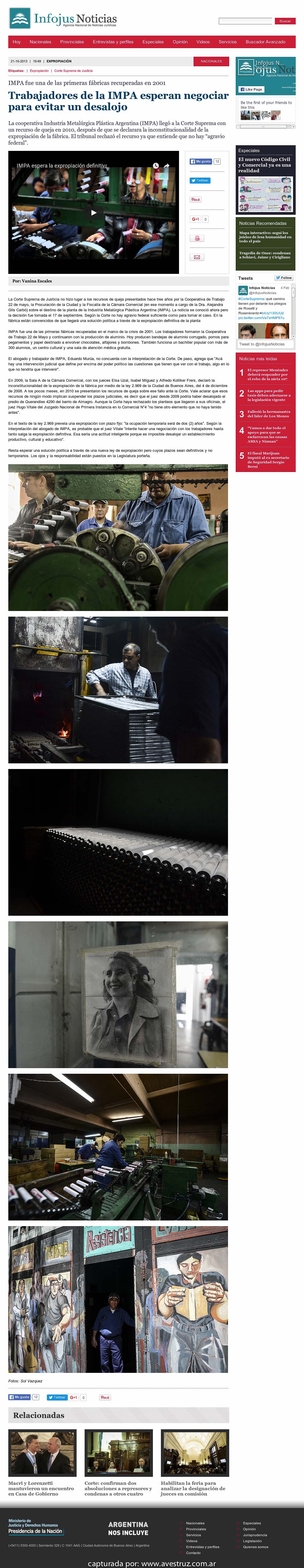 La cooperativa Industria Metalúrgica Plástica Argentina (IMPA) llegó a la Corte Suprema con un recurso de queja en 2010, después de que se declarara la inconstitucionalidad de la expropiación de la fábrica. El tribunal rechazó el recurso ya que entiende que no hay “agravio federal”.