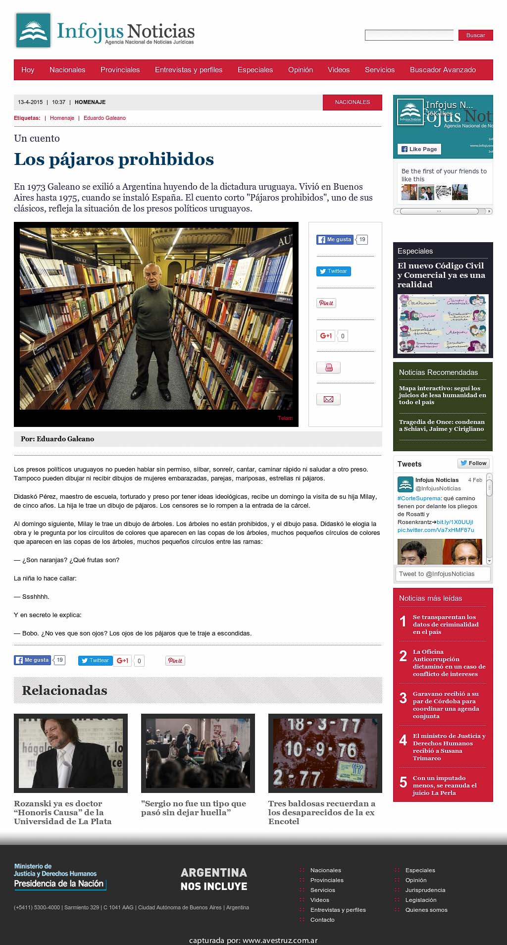 | Fuente: Infojus Noticias | Fecha de publicación: 2015-04-13 | Por: Eduardo Galeano | Fecha de captura:: 2016-01-23 02:31