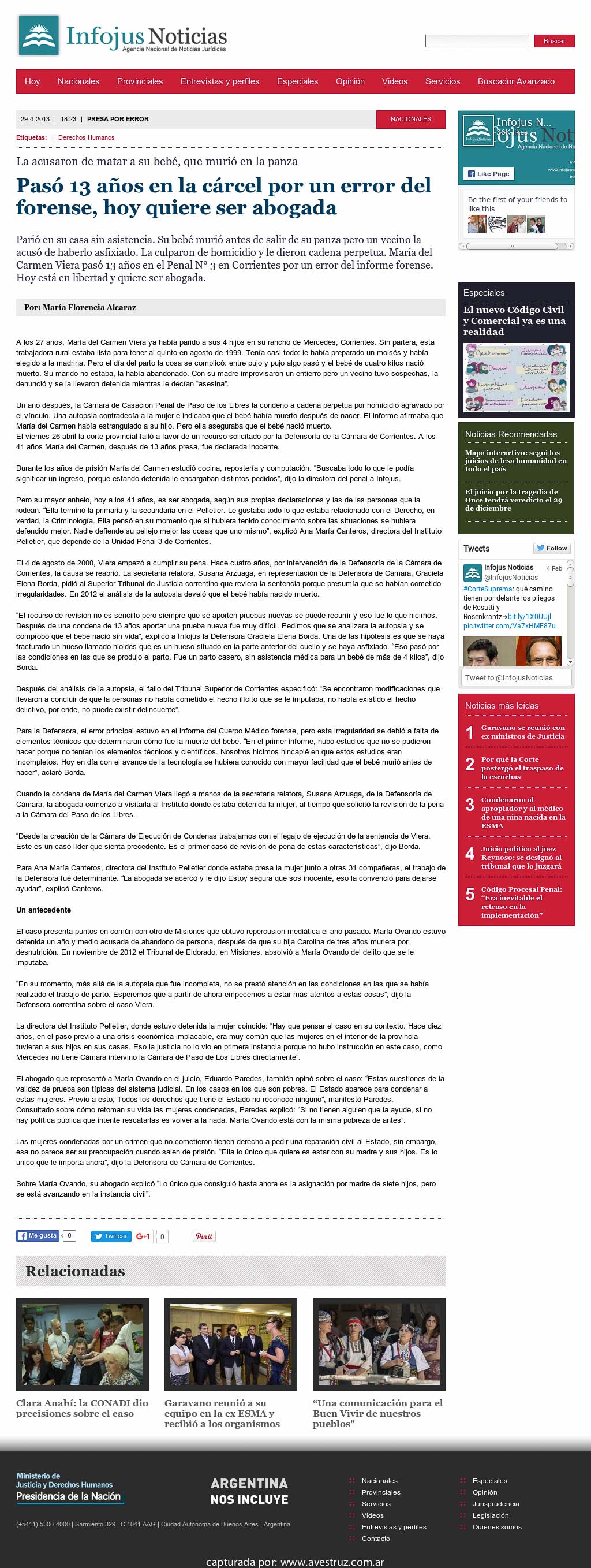 | Fuente: Infojus Noticias | Fecha de publicación: 2013-04-29 | Por: Infojus Noticias | Fecha de captura:: 2015-12-31 06:37