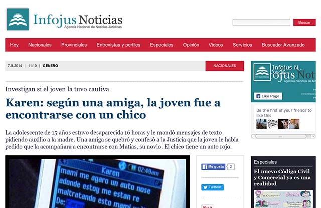 Infojus: Karen: según una amiga, la joven fue a encontrarse con un chico