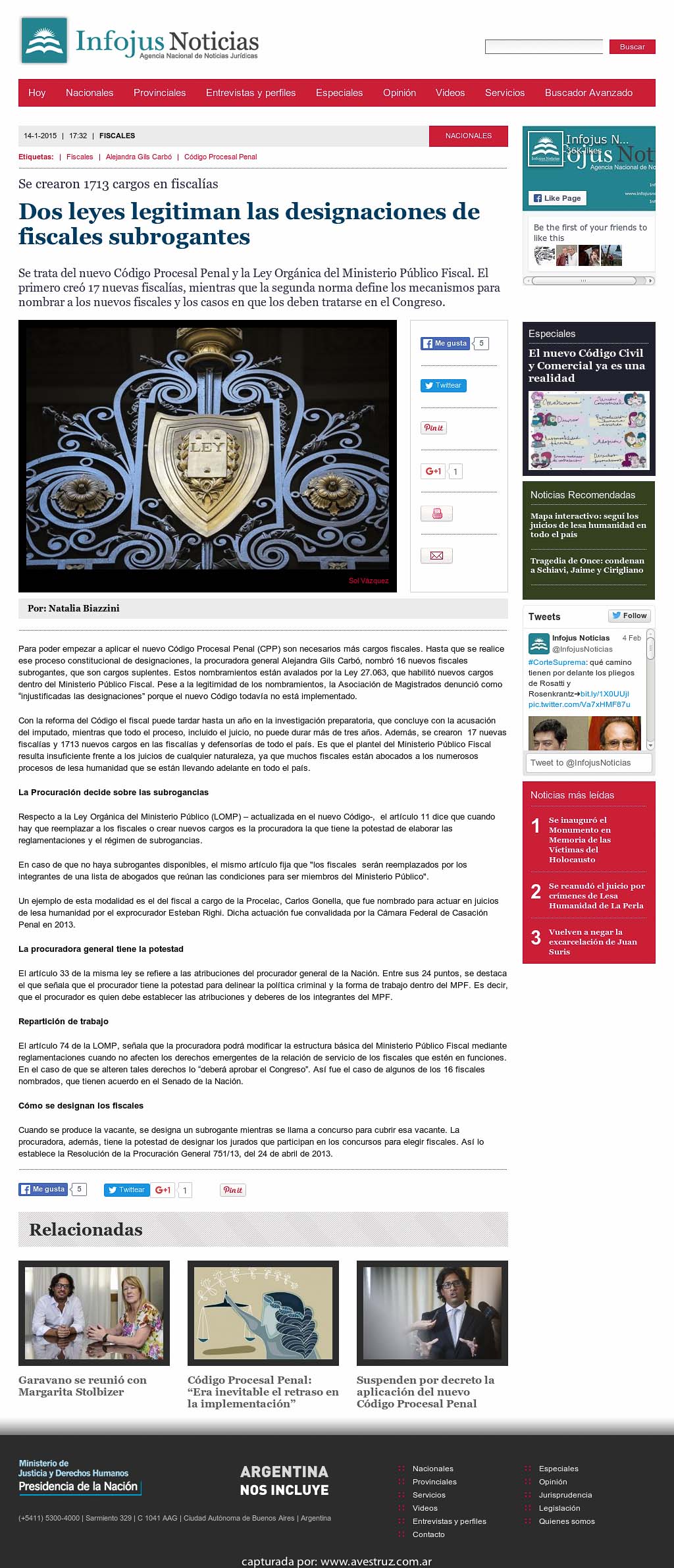 | Fuente: Infojus Noticias | Fecha de publicación: 2015-01-14 | Por: Natalia Biazzini | Fecha de captura:: 2016-01-27 17:52