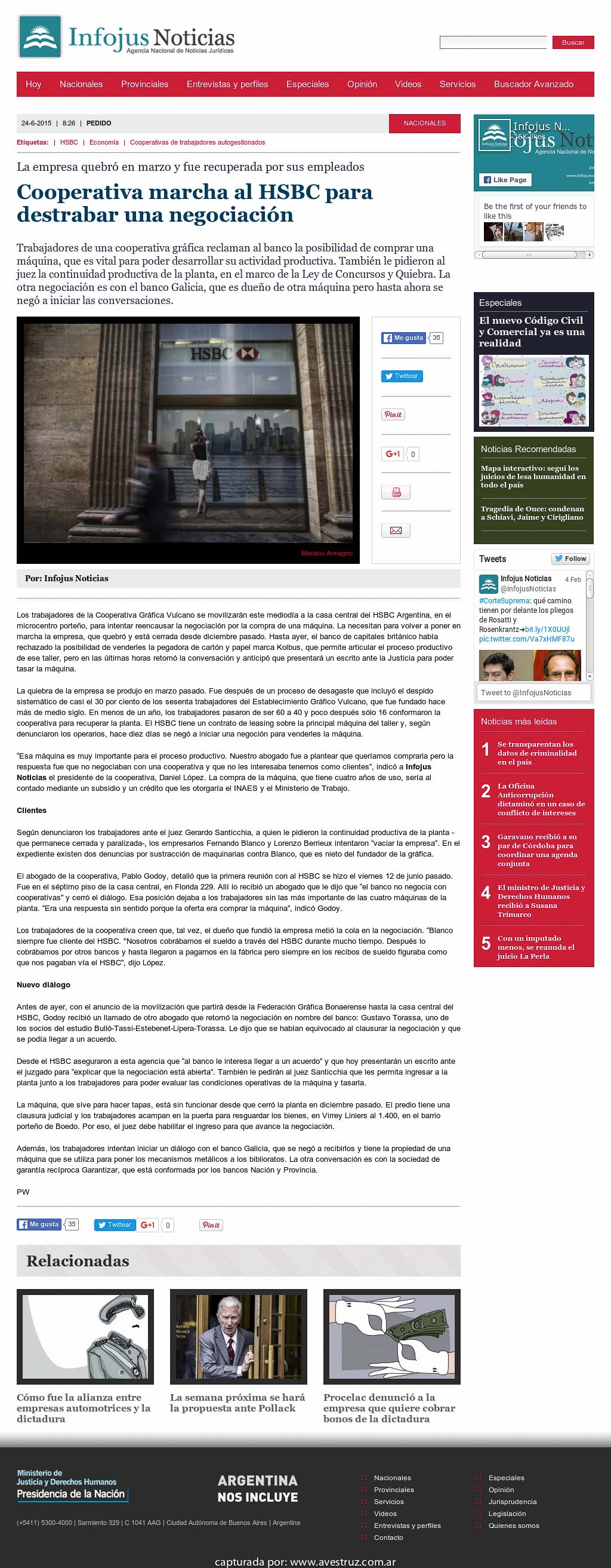 Infojus: Cooperativa marcha al HSBC para destrabar una negociación